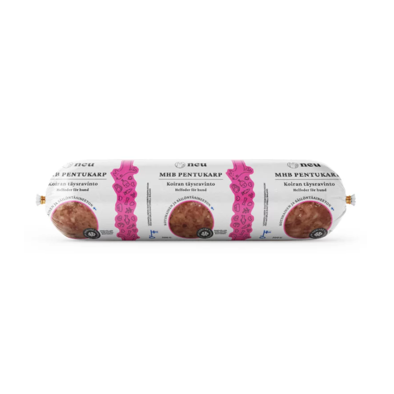 Koostumus: Suomalainen possun liha ja elimet sekä naudan maha ja jänne, silakka, vihannekset, pellava, kauralese, sokerijuurikaskuitu, hapankaali, piimä, kananmuna, maitohappobakteeri, omenaviinietikka, suolistoflooran stabiloimiseen tarkoitetut mikrobit Lactabacillus acidophilus CECT 4529 ja Enterococcus faecium NCIMB 10415 8,5E7/100g.