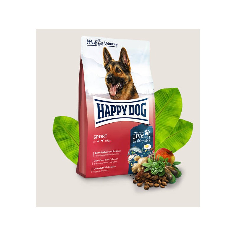 Happy Dog fit & vital Sport on suunniteltu vastaamaan täydellisesti urheilevien ja kilpailevien koirien tarpeita. Hyvin sulavat, ainutlaatuisen Happy Dog Natural Life Conceptin® mukaiset ainesosat ja arvokas Uuden-Seelannin simpukka tukevat liikuntaelimistöä ja suorituskykyä. Energiapitoinen koostumus soveltuu erinomaisesti erittäin aktiivisille sekä urheileville koirille.