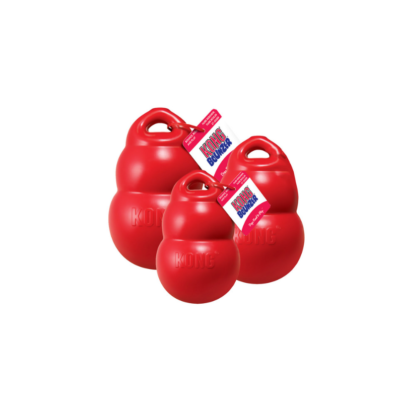 Kong Bounzer on loistava lelu koirille, jotka tykkäävät heitellä, viskoa, pöyritellä ja pelailla leluillaan! Se on kevyt ja malliltaan kuin jättimäinen perus Kong. Bounzer joustaa kun koiraa nappaa siitä kiinni ja palautuu takaisin muotoonsa kun ote hellittää. Siinä on "kahva", josta koiran on helppo kanniskella ja heitellä.
