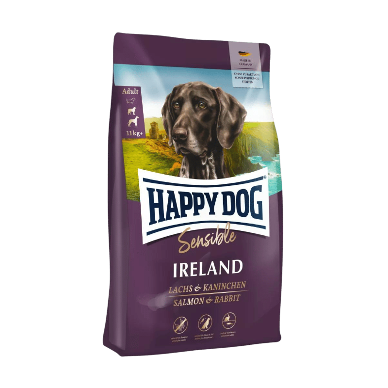 Huolellisesti valikoitujen komponenttien (ei lammas- ja siipikarjaproteiinia, ei riisiä, soijaa ja vehnää), erityisen hellävaraisen valmistusprosessin ja erityisesti sovitetun proteiini- ja energiaosuutensa vuoksi Happy Dog Irland soveltuu myös erittäin hyvin herkkien koirien ja niiden erityisten tarpeiden tietoiseen ravitsemukseen. Puristeet on sovitettu ihanteellisesti keskikokoisten ja suurten koirarotujen hampaille. Tätä ainutlaatuista reseptiä täydentää luonnollisista aineksista valmistettu ainutlaatuinen Happy Dog Natural Life Concept®. Valmistettu Saksassa erittäin tiukan laadunvalvonnan alaisena!