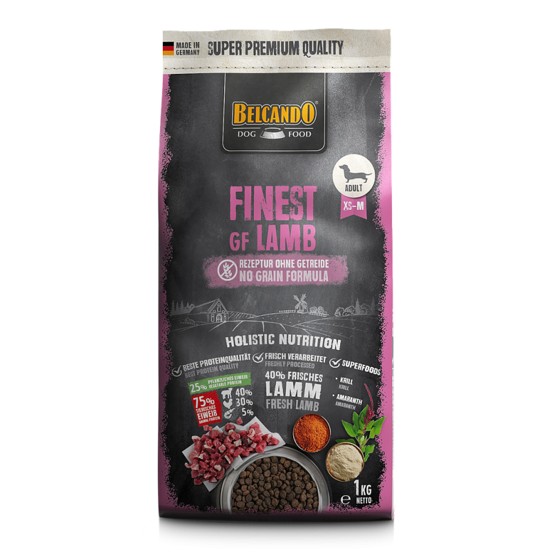 Koostumus: tuoretta lampaanlihaa 40%; amarantti (16,5%); perunatärkkelys; kuivattu lampaan proteiini (10%); matalatuhkaista siipikarjan proteiinia, kuivattu; hernejauho; hydrolysoitu kananmaksa; jauhettu meriplankton, jauhettu (krilli 2,5%); kuivattu panimohiiva (2,5%); siipikarjanrasva; kylmäpuristettu viinirypäleensiemenjauho; johanneksenleipäpuun palot, kuivatut; kuivattu juurikasleike, sokeriton; chian siemen; lohiöljy; natriumkloridi; kaliumkloridi; kuivattuja yrttejä (yhteensä 0,2%; nokkosen lehdet, katkerojuuri, rohtosappi, kamomilla, fenkoli, kumina, misteli, siankärsämö, karhunvatukka); yucca schidigera