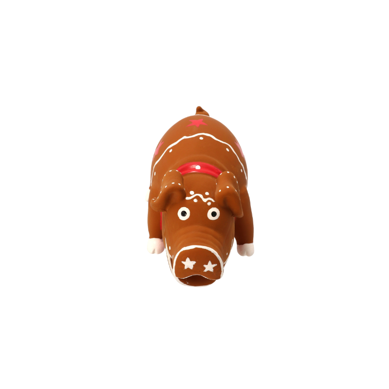 Klassinen lateksiporsas juhlii joulua piparkakkuasuun pukeutuneena. Mörisevä ääni on edelleen vanha tuttu. Hyvää joulua!