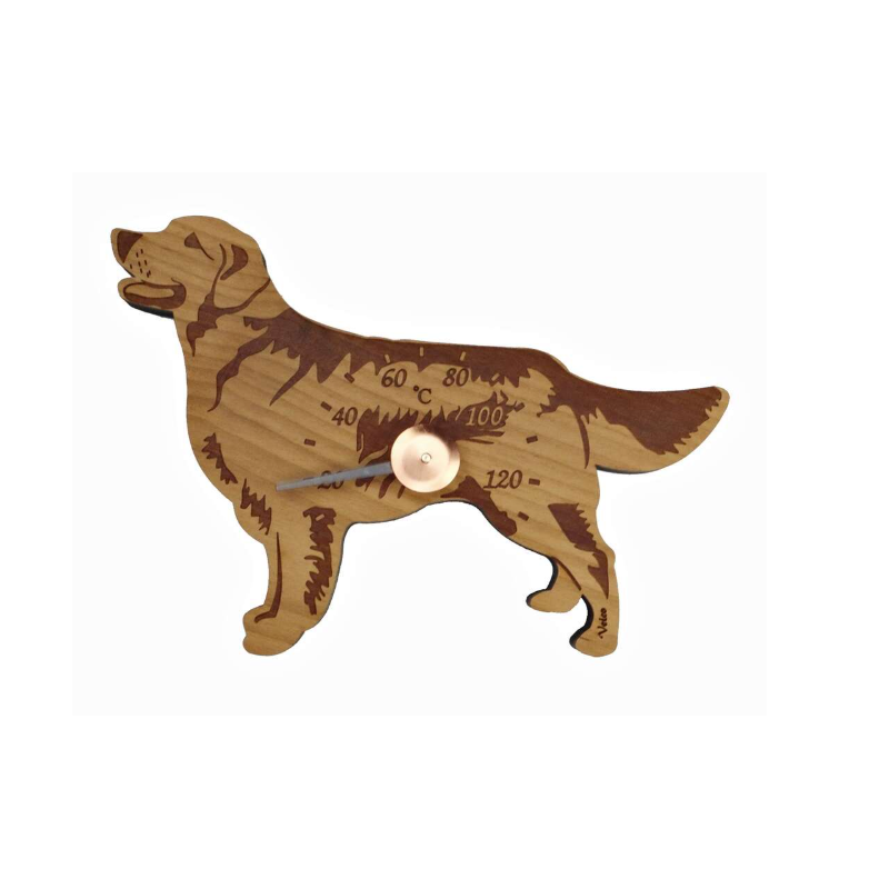Koira-aiheinen saunamittari, lämpökäsiteltyä koivua.