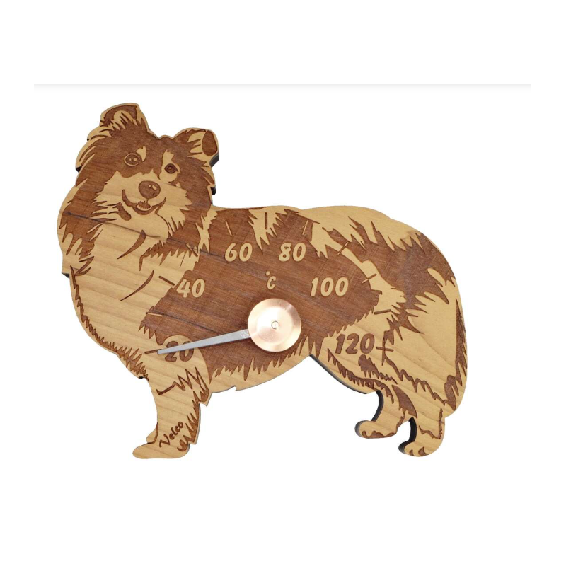 Koira-aiheinen saunamittari, lämpökäsiteltyä koivua.