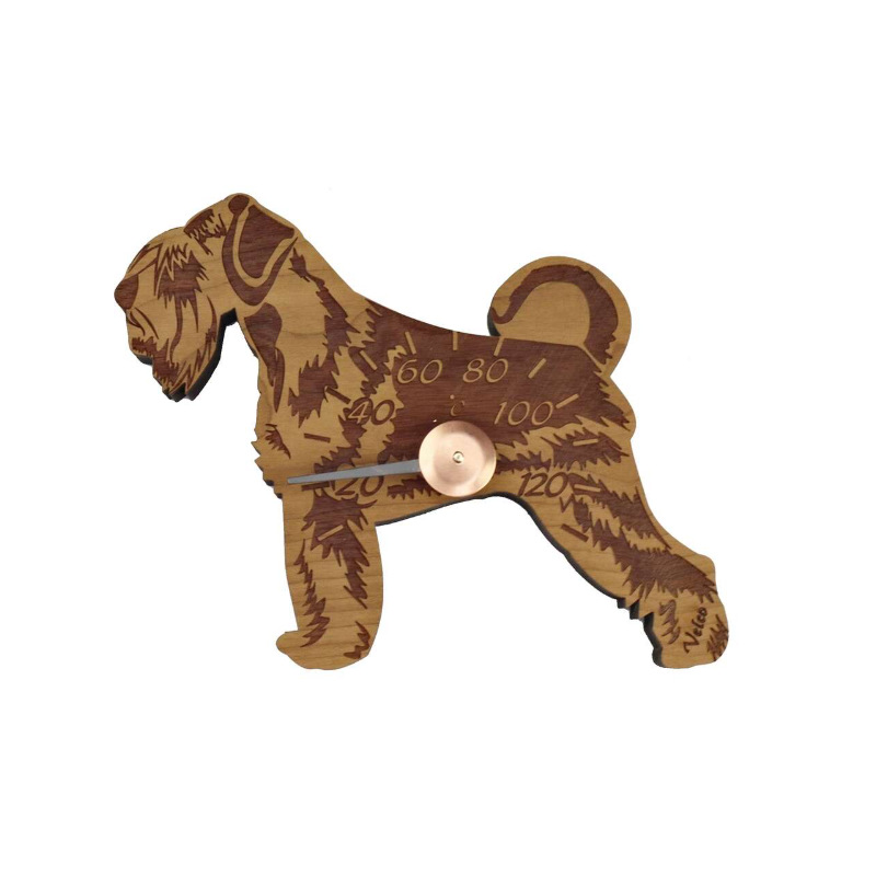 Koira-aiheinen saunamittari, lämpökäsiteltyä koivua.