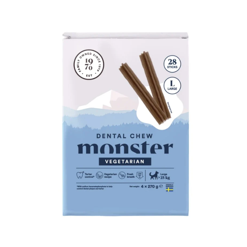 Koirien suunhoito on tärkeä osa lemmikin kokonaisvaltaista hyvinvointia. Hammas- ja ienongelmat ovat tyypillisiä ja parasta koirien hampaiden harjaamista on antaa niille sopivaa pureskeltavaa. Dental Chew purutikut puhdistavat hampaita ja ienpintoja mekaanisesti ja siten auttavat ehkäisemään esimerkiksi ientulehduksia. Sisältää natriumheksametafosfaattia, joka auttaa ehkäisemään uuden hammaskiven muodostumista.