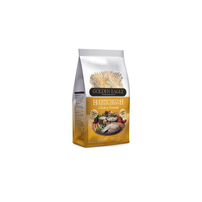 Golden Eagle Holistic Chicken Formula sopii aikuisille sekä aktiivisille koirille, ja sitä voidaan käyttää myös pieni- ja keskikokoisten rotujen pennuille kahdeksan viikon iästä alkaen.