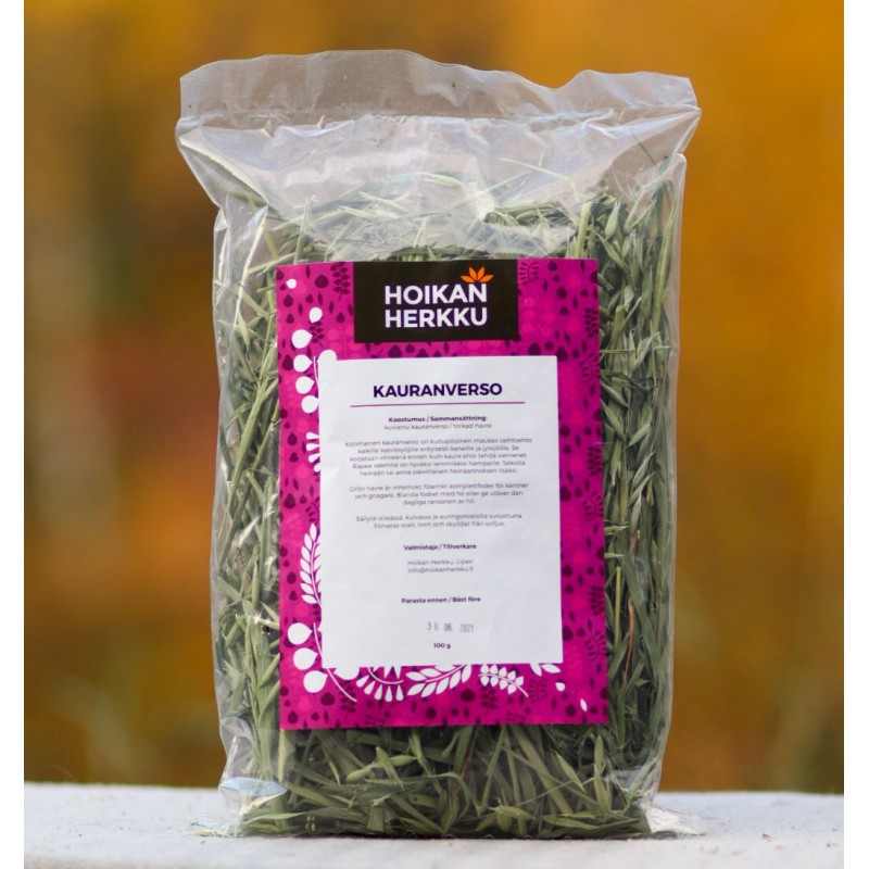 Kotimainen kauranverso on kuitupitoinen maukas vaihtoehto kaikille kasvissyöjille erityisesti kaneille ja jyrsijöille. Se korjataan vihreänä ennen kuin kaura ehtii tehdä siemenet. Rapea rakenne on hyväksi lemmikkisi hampaille.